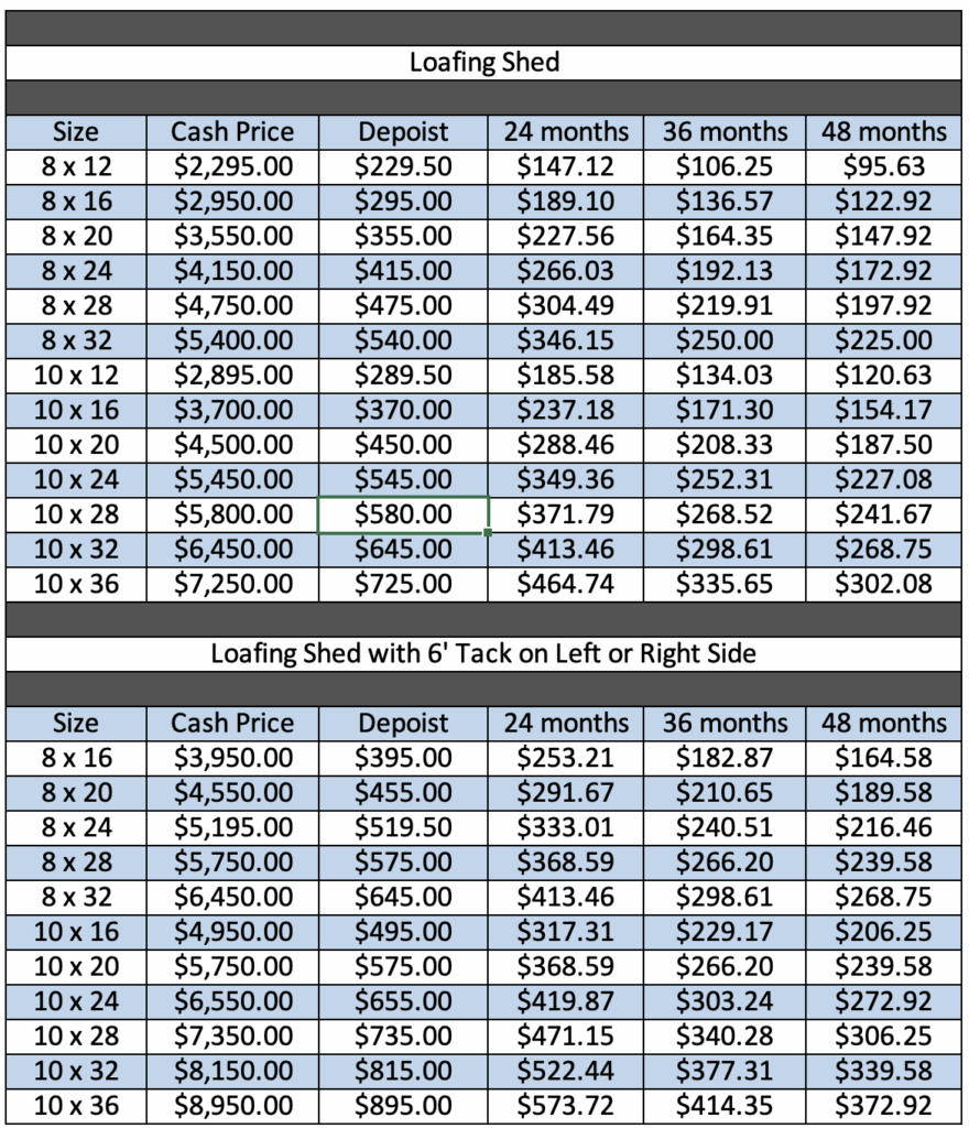 Built like Tanks! Not just slapped together to make a quick sale, our loafing sheds are built to last. And we offer finance options: